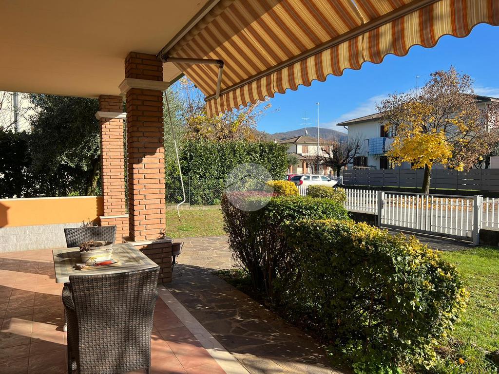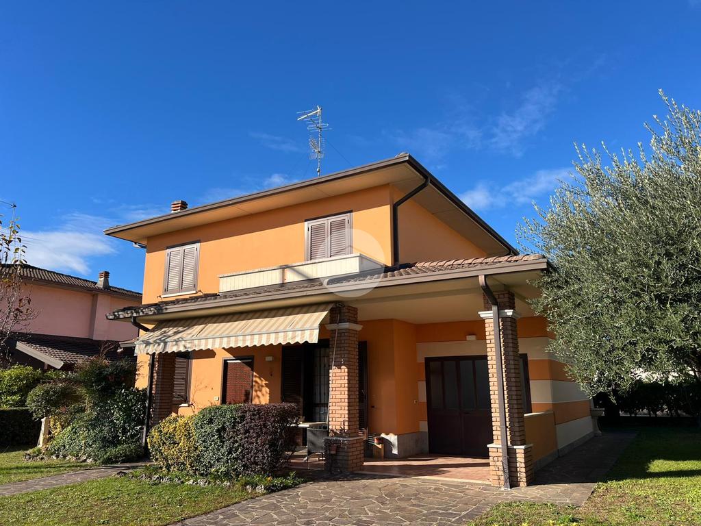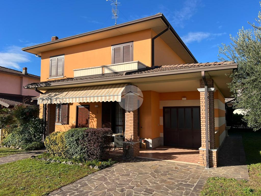 L’ingresso alla proprietà è anticipato da un generoso giardino privato che circonda la villa sui quattro lati, garantendo una totale indipendenza e un elevato livello di privacy. Le aree verdi sono curate e ben distribuite. Un porticato coperto introduce all’abitazione, rivelandosi lo spazio perfetto per trascorrere momenti all’aria aperta in tutte le stagioni.